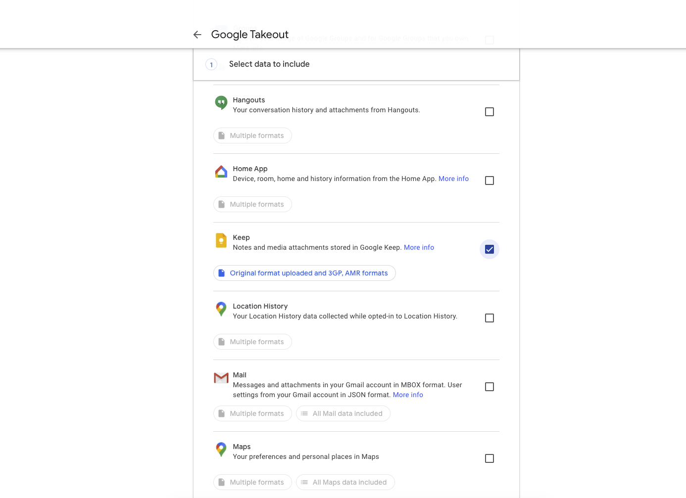 Deselect all, and then scroll down and select only Keep from the list. Once selected, click on Next Step by scrolling to the very bottom of the page.