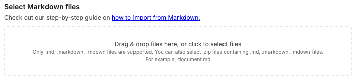 Note: For best results, it is recommended to ZIP all your .md files and their attachments so they can be found by the importer.