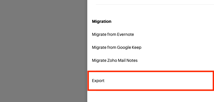In the Migration section, select “Export”.
